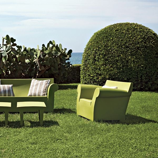Bubble Club is The Industrial Sofa in Which Rotational Moulding Technology Has Enabled Kartell to Mass Produce. A Large Two-Seater Sofa, Characterised by The Soft Line of The Armrests Which Contrast with The More Rational Line of the Backrest; an Essential Silhouette, Reminiscent of “Grandma's Sofa”. Bubble Club Joins the Armchair and Occasional Table, Made in The Same Finishes and Colours, to Become a Real Family, an "Industrial Lounge" for Furnishing a Garden, a Poolside or a Terrace.