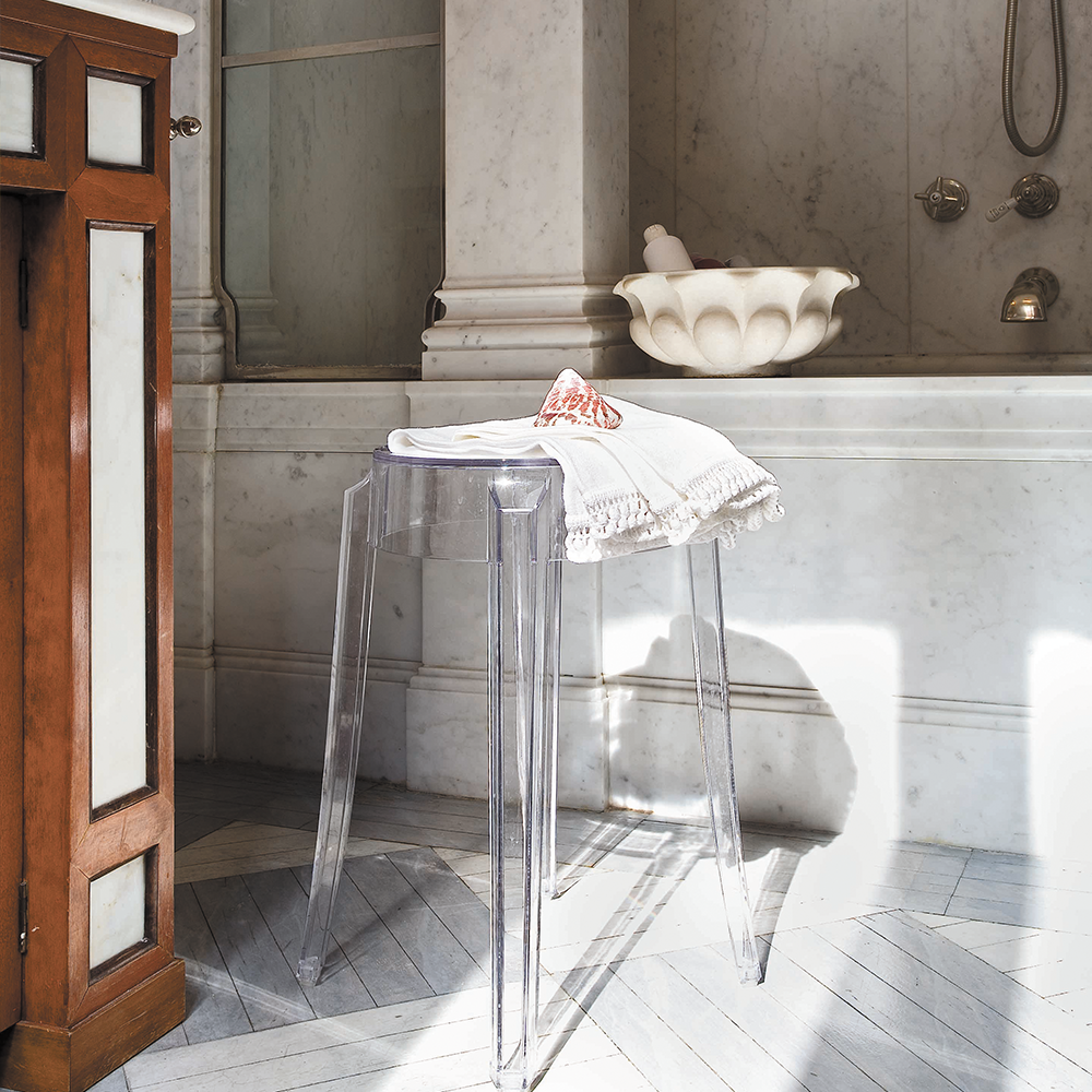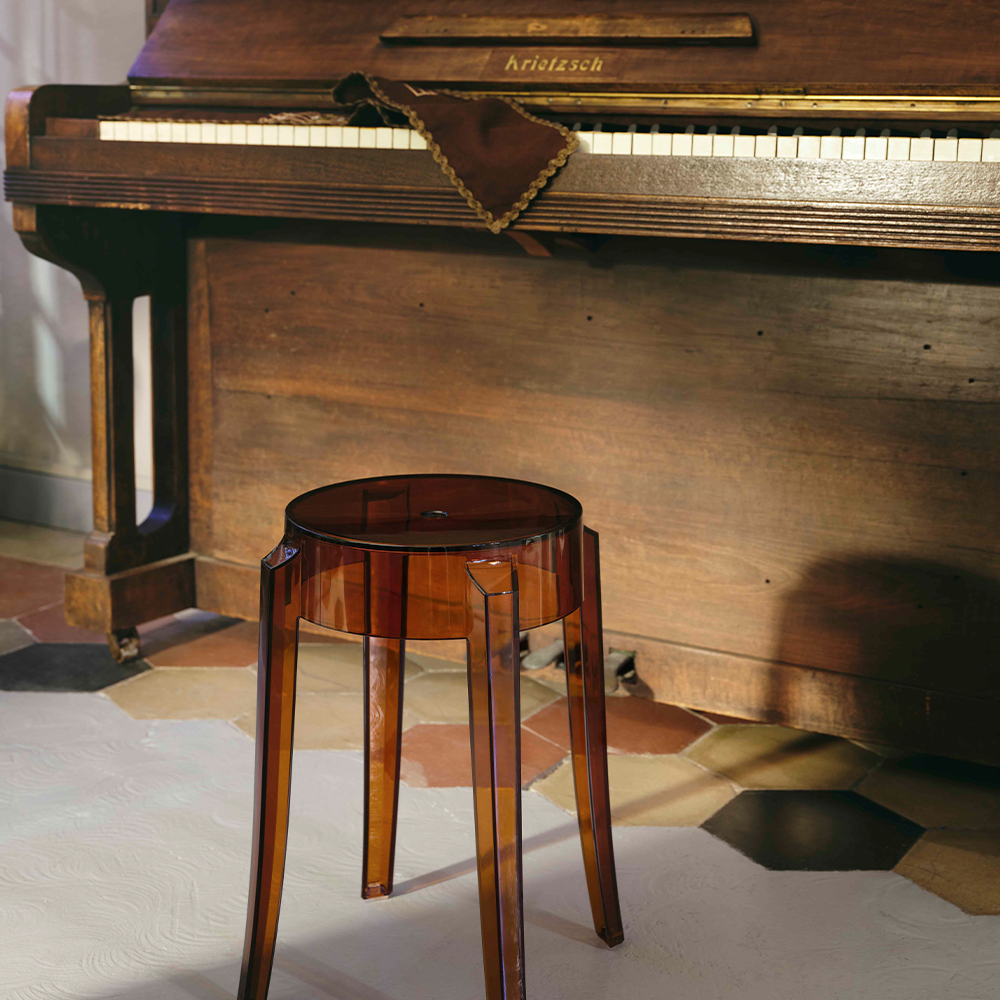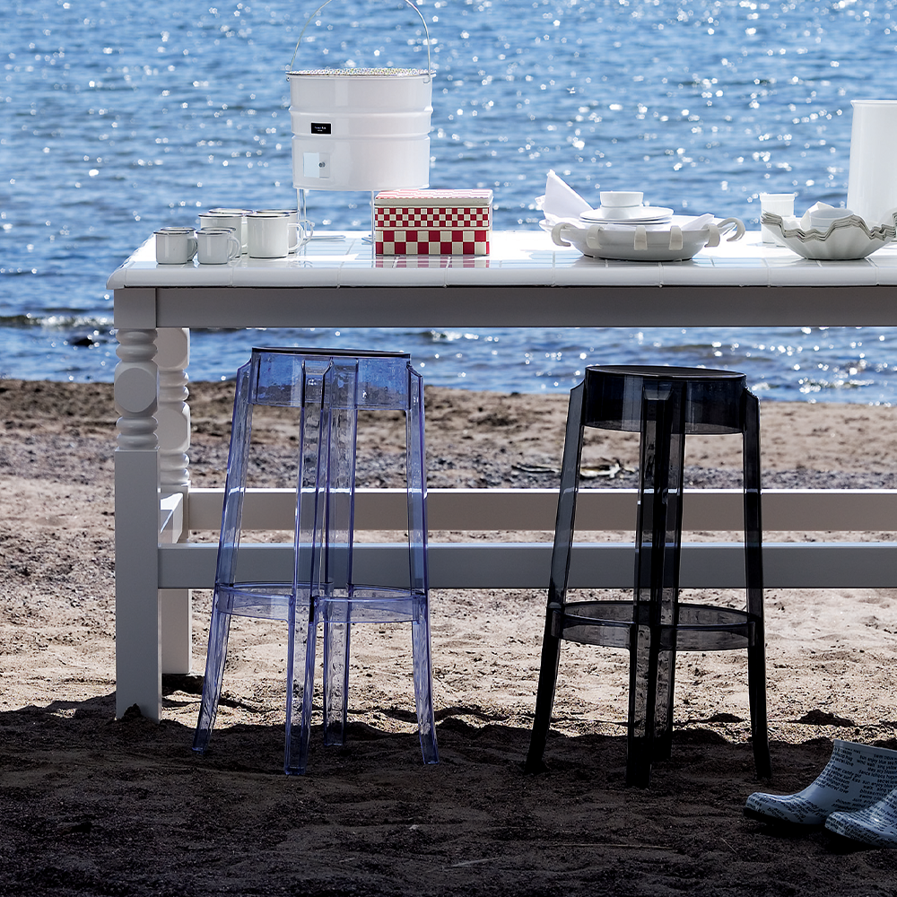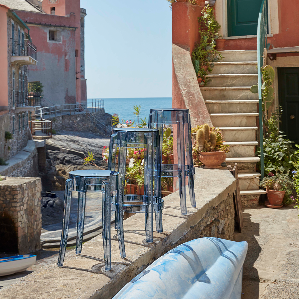 Charles Ghost is The Stool That Mirrors The Shape of Traditional 19th Century Seats. The Line of The Leg is Rounded and Slightly Curled, an Icon of The Classic Stool. It is Available in Three Different Heights: From The Stool for Occasional, Informal Seating, to The Stool for The Kitchen Counter or Bar. It Adapts to Both Indoor and Outdoor Settings.