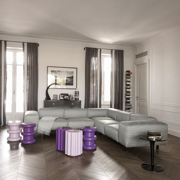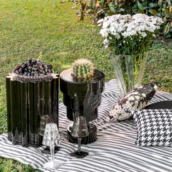 The Colonna stool is included in the "Kartell goes Sottsass - A Tribute to Memphis" collection, launched in homage to the movement founded by design guru Ettore Sottsass. Colonna's main asset is its versatility, allowing it to be used as either a stool or a side table.