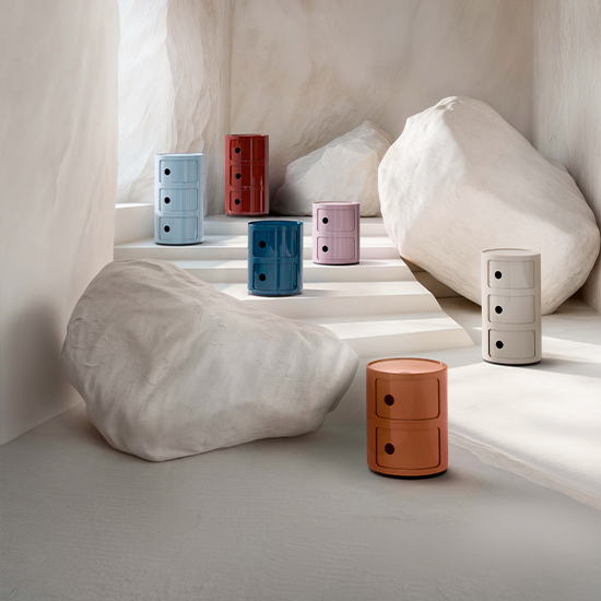 "These stacking storage units on wheels have made it possible for everyone to change their living space, shaping it to their desires, with no more conformisms". Interview with Anna Castelli Ferrieri taken from “RAKAM” magazine, 1986